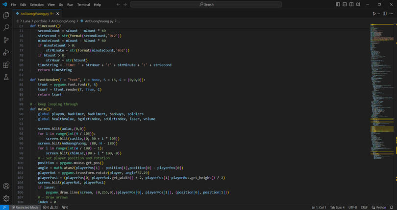 This is one of the most complicated pygame I have made using python with the assistance of my teacher to learn how a game is developed.